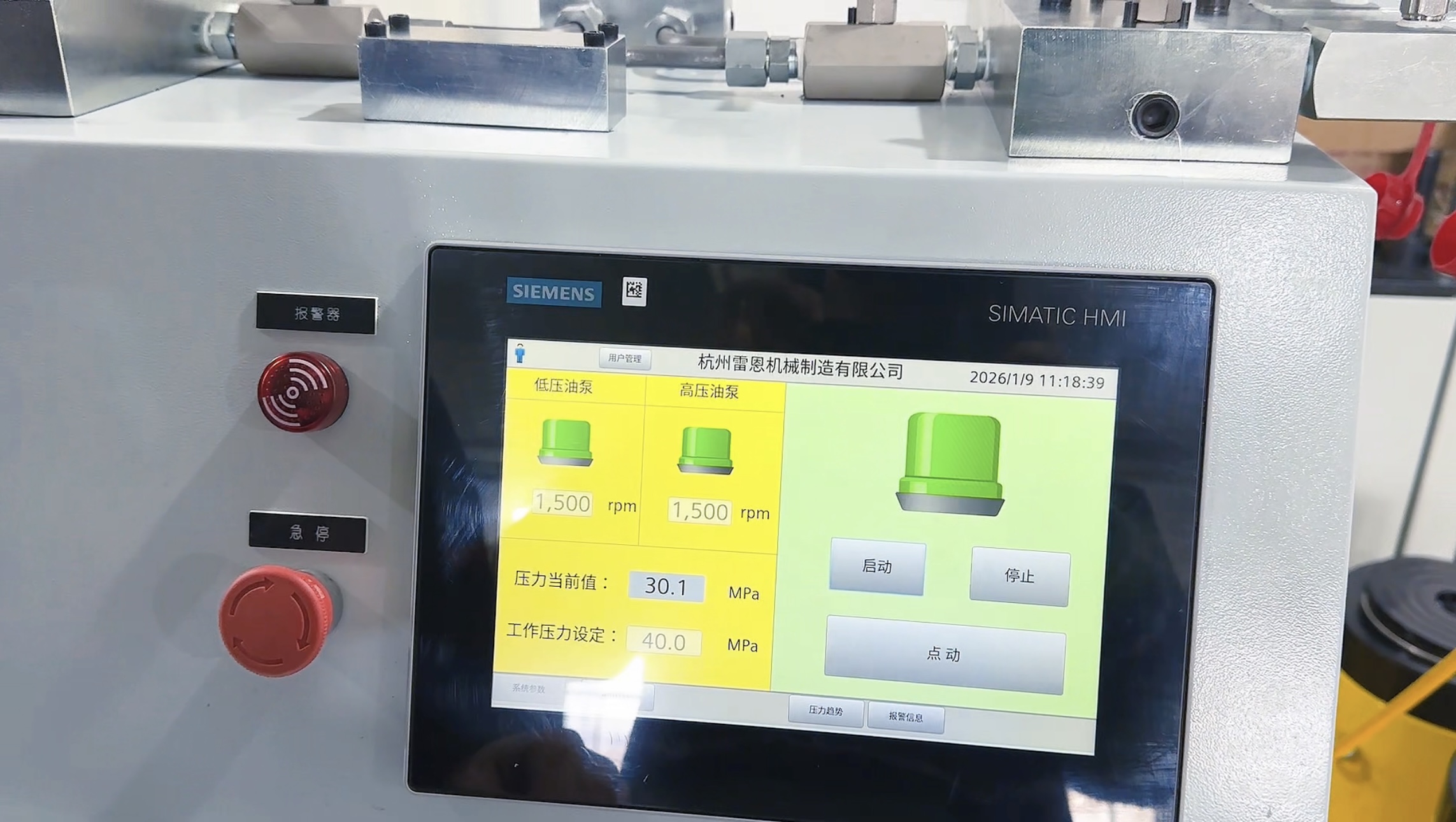 採(cǎi)取PLC控制模式實現全自動控制,所有啓動、停止操作全部在觸摸屏上完成,屏幕清晰的壓力數值顯示,準確(què)的反映即時升壓變化狀況,方便現場使用。