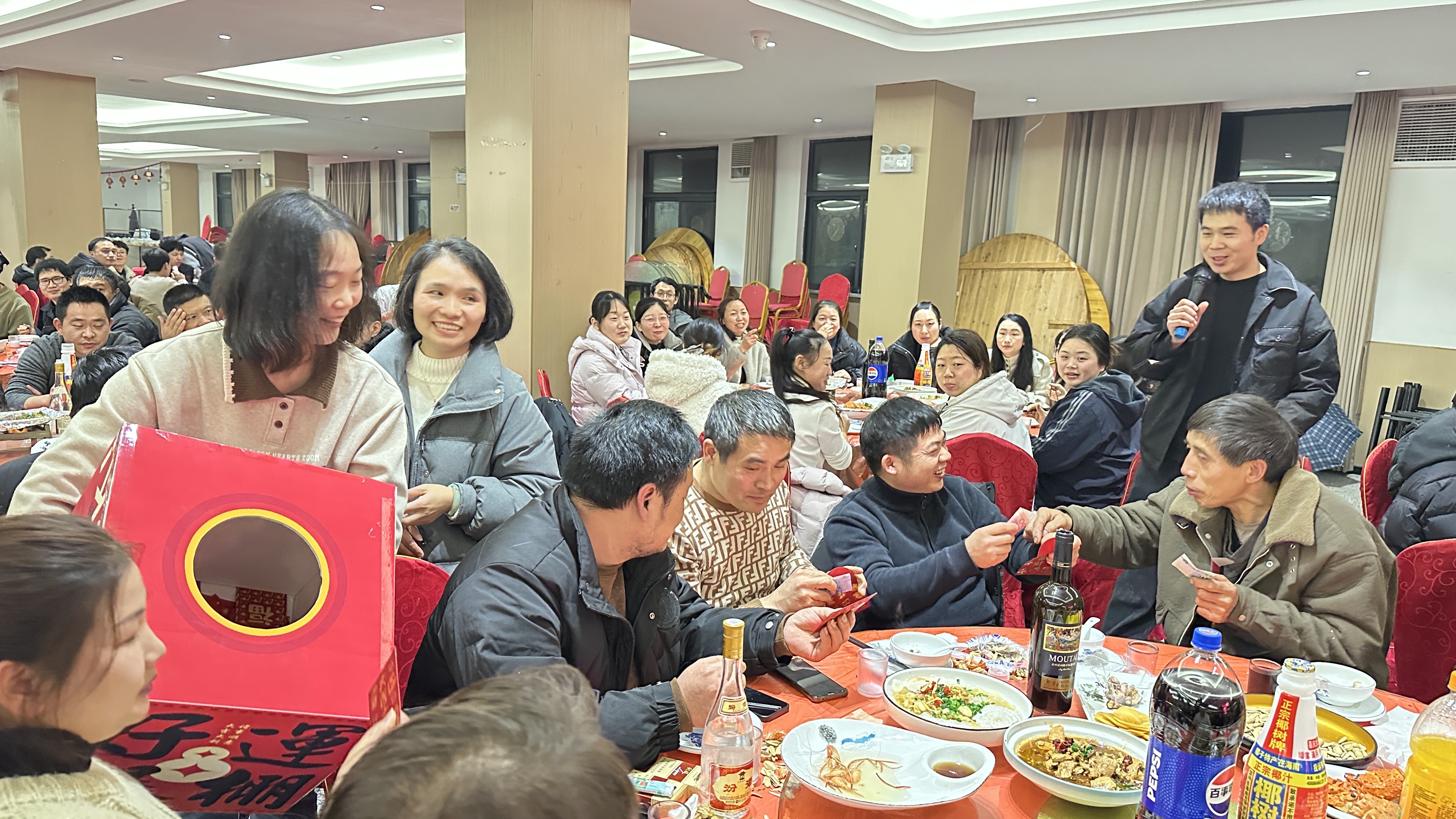 敬酒環節溫情滿滿,領導們逐桌與家人碰杯緻謝,送上馬年祝福,家人們踴躍回敬,美酒與問候交織,凝聚同心同行的力量。随後的抽選紅包環節點燃全場,每一份紅包都承載著(zhe)公司的厚愛(ài),歡呼聲中滿是喜悅。